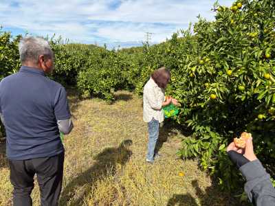 頂いたプラスチックのカゴに味見をしながらみかんを詰めるだけ詰める。