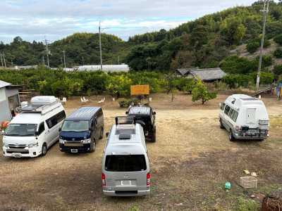 前回停めたビニールハウスのそばの駐車場へはみかんの枝が張り出していて通行出来ずに入ったところすぐに停める。